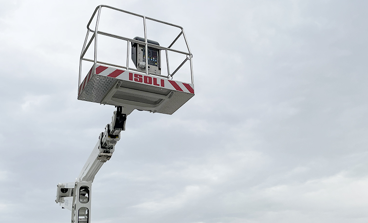 La piattaforma, dotata di braccio articolato telescopico, prevede una stabilizzazione quadrupla ed è priva di ingombro sotto cesta.